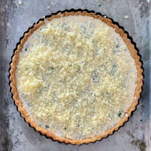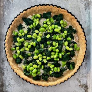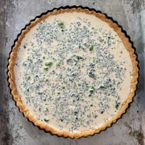 Making a good quiche from scratch is quite an operation, but the great thing about this recipe is that you can make all the elements several days in advance, bringing it all together on the day for the final bake. You can make the pastry, line the tart tin, blind bake the pastry case, prepare the vegetables and mix the custard filling 3-4 days in advance so with a bit of planning you can spread the work and make it a far less onerous task.